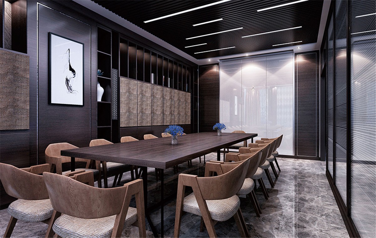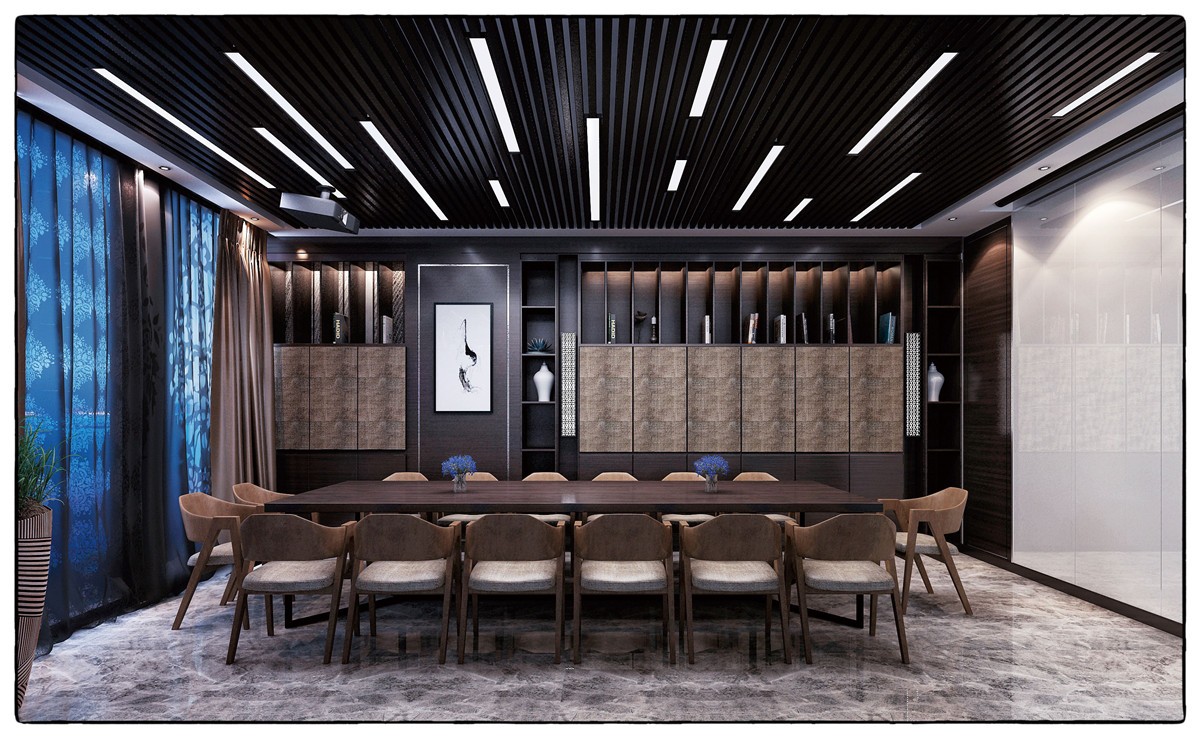 案例介紹:中式風(fēng)格辦公場(chǎng)所,公司主營(yíng)茶具、茶葉等線(xiàn)上銷(xiāo)售,中式風(fēng)格配上鋁制以及石材元素